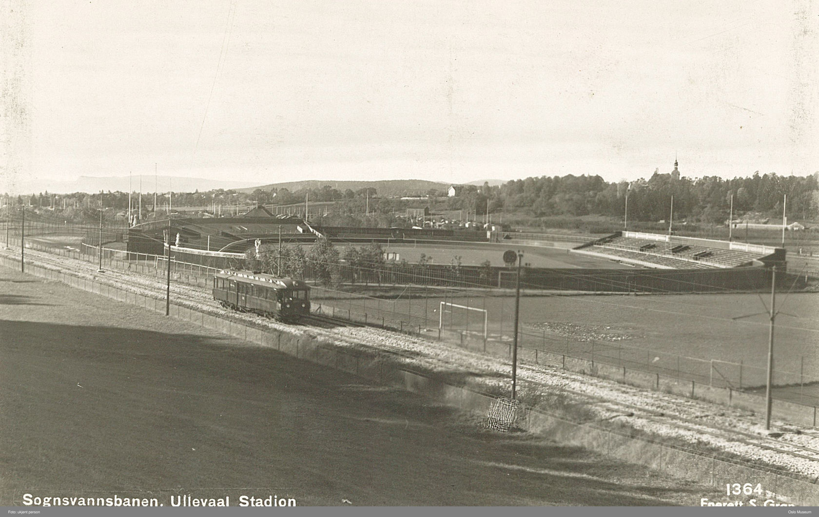 Sognsvannsbanen passerer Ullevål Stadion omkring 1935. (Foto: ukjent fotograf/ Oslo Museum).