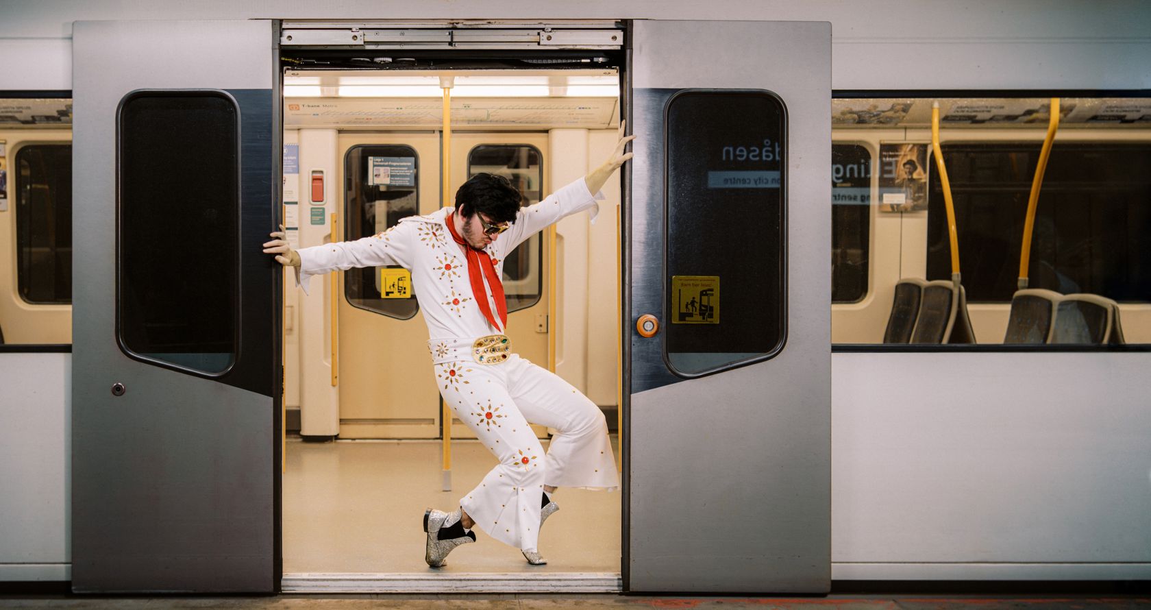 Elvis-lookalike som holder dørene. Ikke gjør som ham.